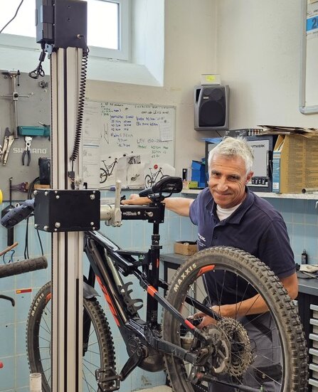 Elektrischer Montageständer - unser Tipp für alle Fahrradwerkstätten, wenn die Fahrräder immer schwerer und die Mechaniker "erfahrener" werden - absolut empfehlenswert!
